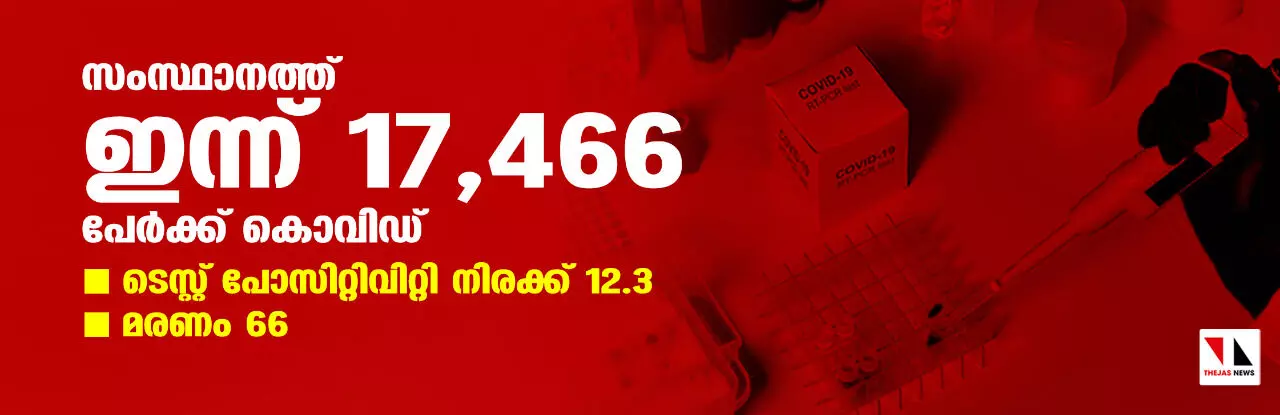 സംസ്ഥാനത്ത് ഇന്ന് 17,466 പേര്ക്ക് കൊവിഡ്; ടെസ്റ്റ് പോസിറ്റിവിറ്റി 12.3; ആകെ മരണം 16,035
