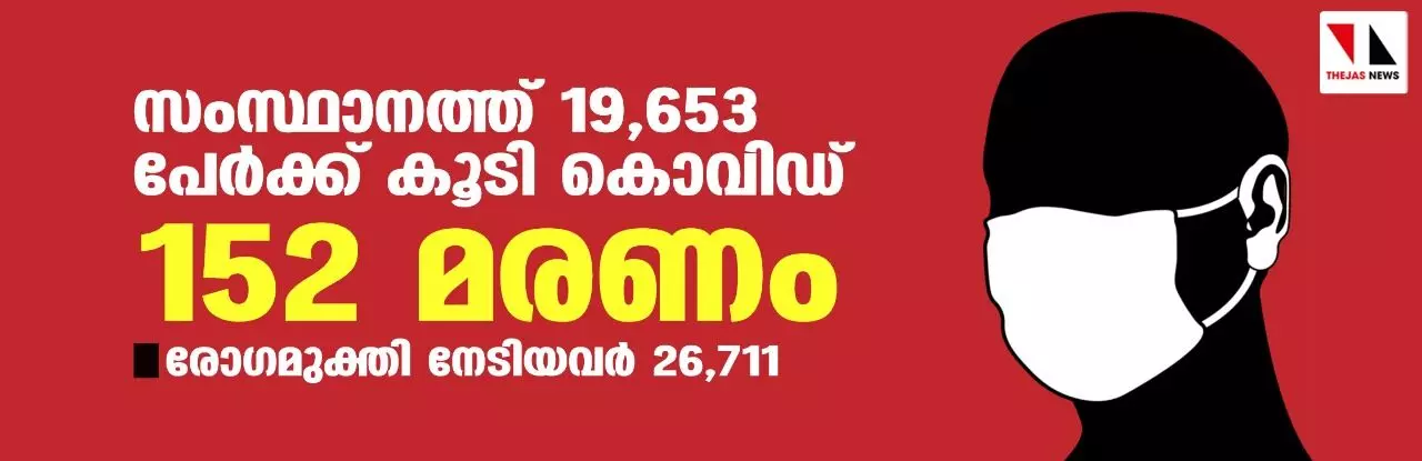 സംസ്ഥാനത്ത് ഇന്ന് 19,653 പേര്ക്ക് കൊവിഡ്; മരണം 152