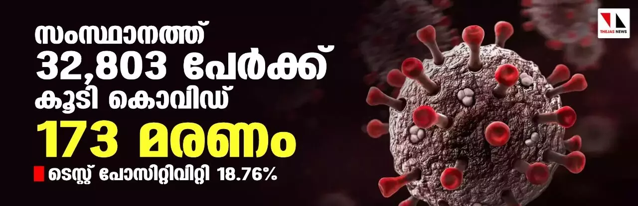 സംസ്ഥാനത്ത് ഇന്ന് 32,803 പേര്ക്ക് കൊവിഡ്; ടെസ്റ്റ് പോസിറ്റിവിറ്റി നിരക്ക് 18.76; മരണം 173