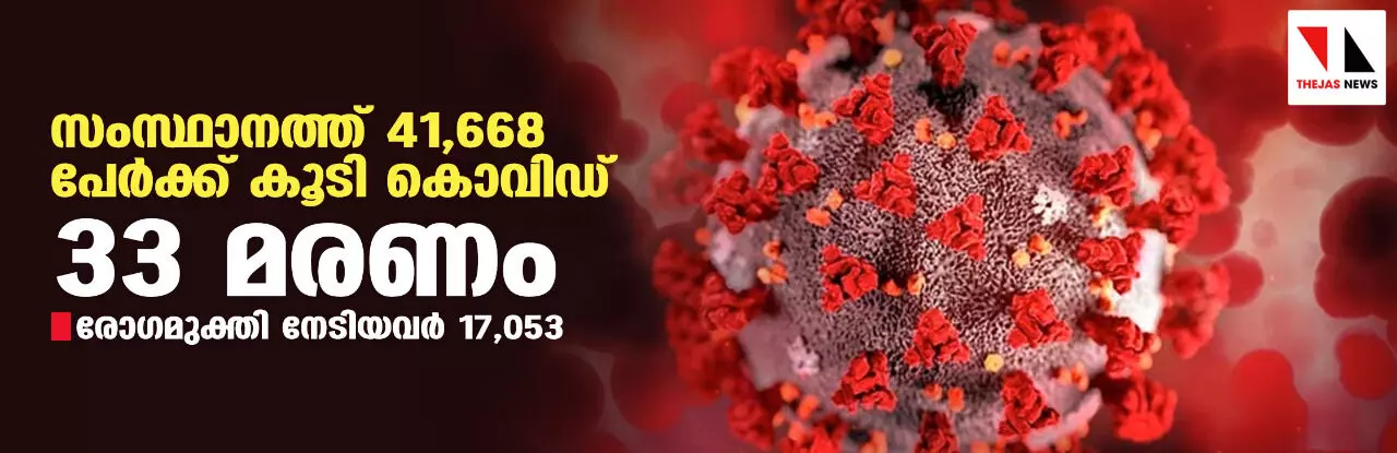 സംസ്ഥാനത്ത് ഇന്ന് 41,668 പേര്ക്ക് കൊവിഡ്; മരണം 33