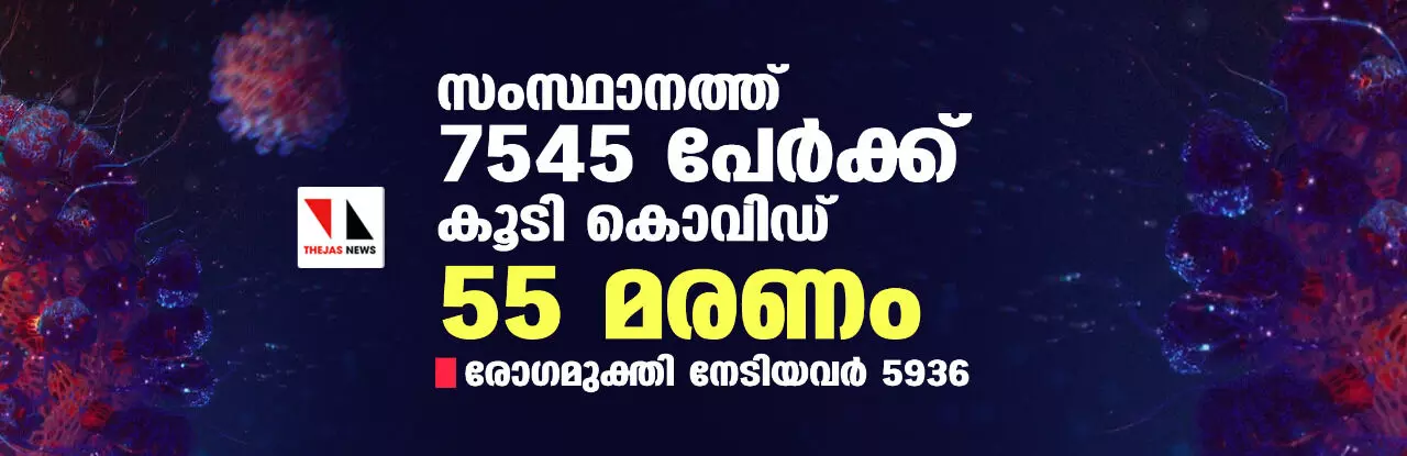 സംസ്ഥാനത്ത് ഇന്ന് 7545 പേര്ക്ക് കൊവിഡ്; മരണം 55
