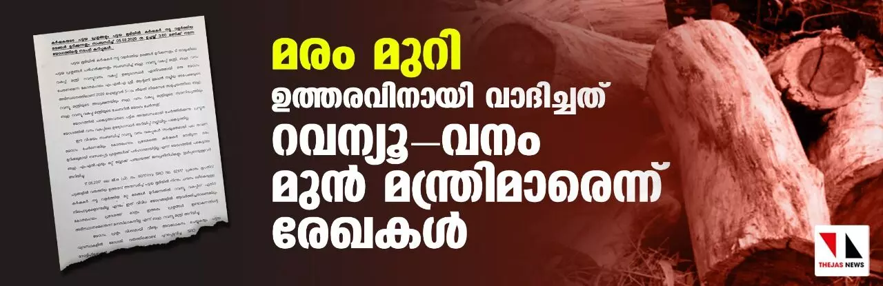 മരം മുറി: ഉത്തരവിനായി വാദിച്ചത് റവന്യൂ - വനം മുൻ മന്ത്രിമാരെന്ന് രേഖകൾ