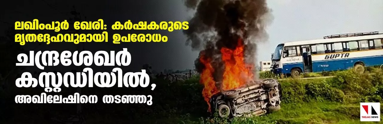 ലഖിംപൂർ ഖേരി: കർഷകരുടെ മൃതദേഹവുമായി ഉപരോധം; ചന്ദ്രശേഖർ കസ്റ്റഡിയിൽ, അഖിലേഷിനെ തടഞ്ഞു