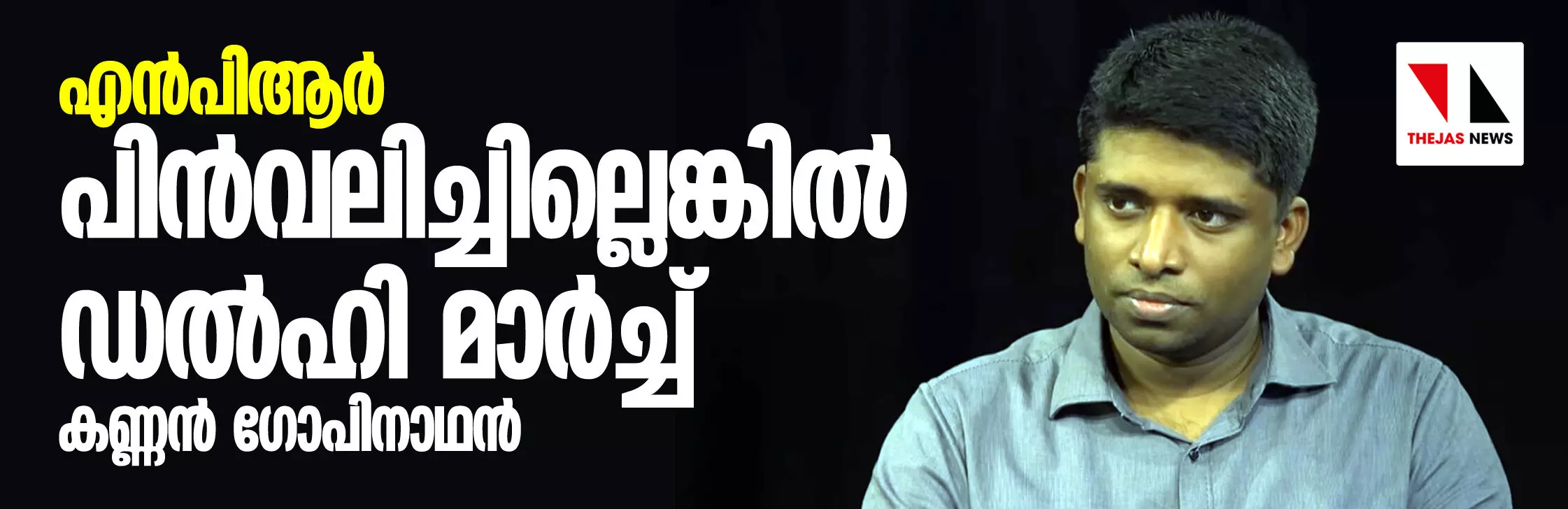 എന്പിആര് പിന്വലിച്ചില്ലെങ്കില് ഡല്ഹി മാര്ച്ച്: കണ്ണന് ഗോപിനാഥന്