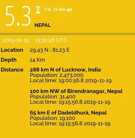 നേപ്പാളിലുണ്ടായ ഭൂചലനത്തെ തുടര്ന്ന് ഡല്ഹിയിലും ഉത്തര് പ്രദേശിലും ഉണ്ടായ പ്രകമ്പനം ജനങ്ങളെ പരിഭ്രാന്തരാക്കി
