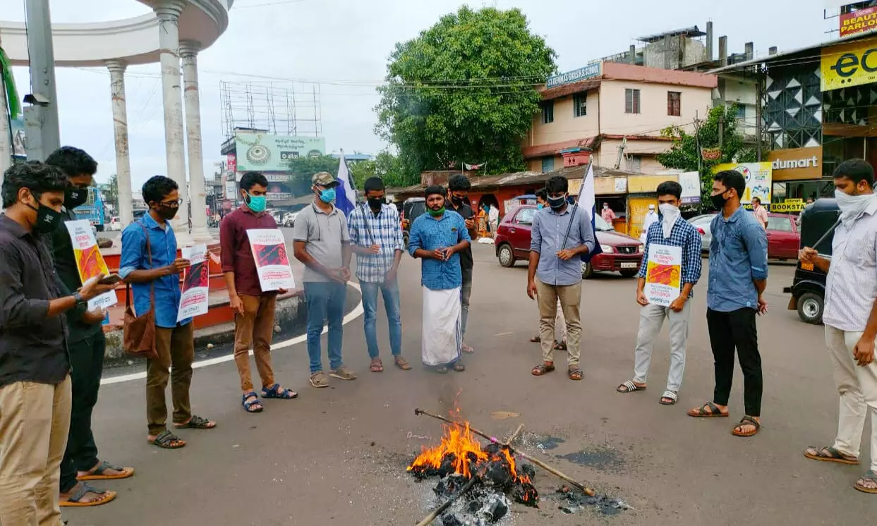 മലപ്പുറത്തിനെതിരായ വിദ്വേഷ പ്രചാരണം; മനേക ഗാന്ധിയുടെ കോലം കത്തിച്ച് പ്രതിഷേധിച്ചു