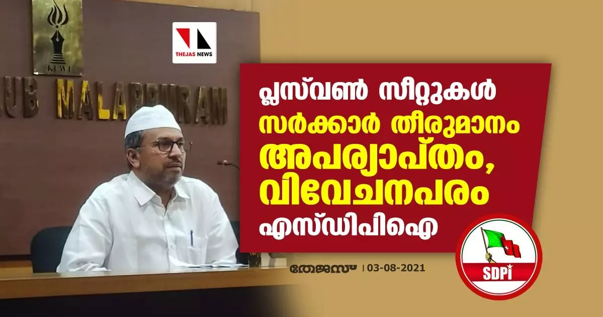പ്ലസ്വണ് സീറ്റുകള്: സര്ക്കാര് തീരുമാനം അപര്യാപ്തം, വിവേചനപരം- എസ്ഡിപിഐ