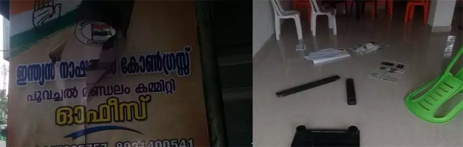 പൂവച്ചലില് കോണ്ഗ്രസ് ഓഫീസിനും വീടുകള്ക്കും നേരെ അക്രമം