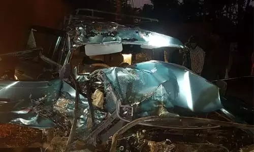 കൊടുങ്ങല്ലൂരില്നിന്നും കൊല്ലൂരിലേക്കു പോവുകയായിരുന്ന കെഎസ്ആര്ടിസി ഡീലക്സ് ബസ്സുമാണ് കൂട്ടിയിടിച്ചത്. അപകടത്തില് കാര് പൂര്ണമായും തകര്ന്നു. കൊടുങ്ങല്ലൂര് ഫയര്ഫോഴ്സ് അസിസ്റ്റന്റ് സ്റ്റേഷന് ഓഫിസര് പി ബി സുനിയുടെ നേതൃത്വത്തില് ഹൈഡ്രോളിക് കട്ടറും കോമിക് ബാറും ഉപയോഗിച്ച് കാറിന്റെ മൂന്ന് ഡോറുകളും മുറിച്ചുമാറ്റിയാണ് അപകടത്തില്പ്പെട്ടവരെ പുറത്തെടുത്തത്.