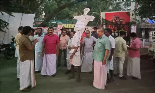 ഗുരുവായൂരില് കോണ്ഗ്രസ് കൗണ്സിലര്മാര് ടി എന് പ്രതാപന്റെ കോലം കത്തിച്ചു