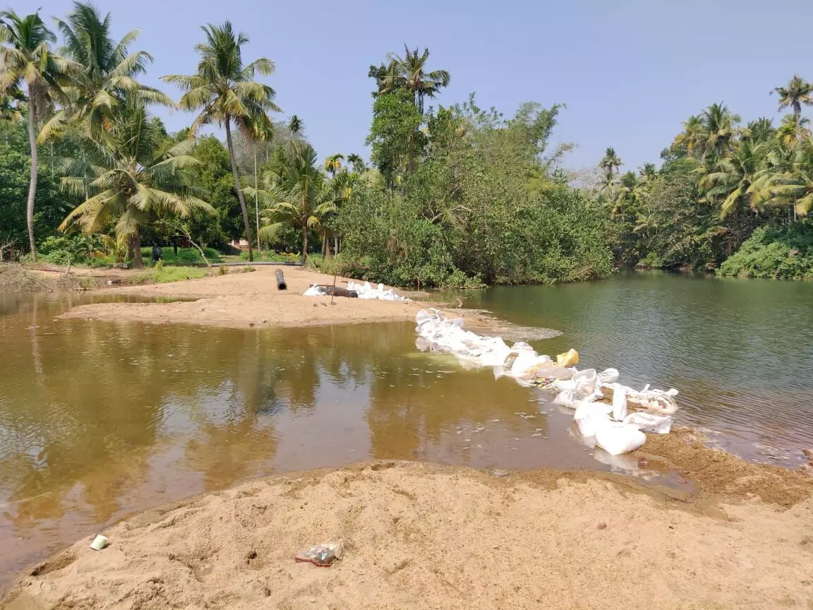 മണല് ബണ്ട് തകര്ന്നതിനെ തുടര്ന്ന് 600 ഓളം തൊഴിലുറപ്പ് തൊഴിലാളികള് ചേര്ന്ന് ചാക്കില് മണല് നിറച്ച് ബണ്ടിന്റെ പൊട്ടിയ ഭാഗങ്ങളില് സ്ഥാപിച്ചതോടെ ഭാഗികമായി ഉപ്പുവെള്ളത്തെ തടയാനായിട്ടുണ്ട്. എന്നാല് വേലിയേറ്റമുണ്ടാകുമ്പോള് ബണ്ട് വീണ്ടും തകരാന് സാദ്ധ്യത ഏറെയാണ്. രണ്ട് മാസം മുന്പ് മണല് ബണ്ടുണ്ടാക്കിയ ഡ്രഡ്ജര് സമീപത്തായുണ്ട്. മണല് ബണ്ട് തകര്ന്നതിനെക്കുറിച്ച് അന്വേഷണം നടത്തണമെന്നും അടിയന്തിരമായി മണല് ബണ്ട് ഡ്രഡ്ജറുപയോഗിച്ച് പുനഃസ്ഥാപിക്കണമെന്നും കോണ്ഗ്രസ് കുഴൂര് മണ്ടലം പ്രസിഡന്റ് എം എ ജോജോ ആവശ്യപ്പെട്ടു.