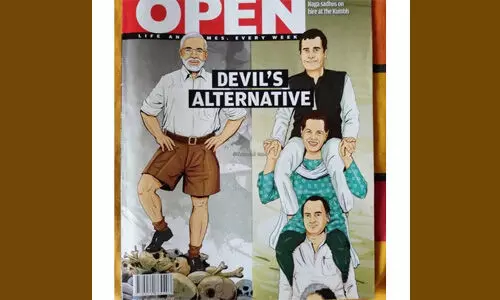 ഞാന് ഡിഗ്രിക്ക് പഠിക്കുന്ന സമയത്ത് 2013 ല് വാങ്ങി വായിച്ച ഒരു മാഗസിനാണിത്. മോദിയെ കോര്പ്പറേറ്റുകള് അധികാരത്തിലേറ്റുന്നതിനു മുന്പുള്ള ഒരു OPEN, കവര് ചിത്രത്തില് കാണുന്നത് മനുഷ്യതലയോട്ടികള്ക്ക് മുകളിലൂടെ വളര്ന്ന് വന്ന മോദിയുടെ ഫുള്ഫിഗര്. തൊട്ടടുത്ത് കുടുംബരാഷ്ട്രീയത്തിലൂടെ വളര്ന്നു വന്ന രാഹുല്. പേരും അങ്ങനെ തന്നെയാണ് Devil's Alternative പൈശാചികതയുടെ ബദല്. ഇന്ന് ഈ കവര്പേജ് വരക്കാന് ബോധമുള്ള ഇന്ത്യക്കാരന് ഒരവസരം കിട്ടുകയാണെങ്കില്, മോദിയുടെ കാലിന് ചുവട്ടില് കിടക്കുന്ന ഗുജറാത്തിലെ 3000 ലേറെ വരുന്ന നിരപരാധികളുടെ തലയോട്ടിക്കൊപ്പം, പശുവിന്റെ പേരില് കൊല്ലപ്പെട്ട 100 കണക്കിനാളുകളുടെ തലയോട്ടിയും കൂടി ചേര്ത്ത് ഒടുവില് മോദിയുടെ തലമാത്രം പുറത്തു കാണുന്ന രീതിയില് വരച്ച് രാഹുല്ഗാന്ധിയുടെ ഫോട്ടോക്ക് സമാന്തരമായി വയ്ച്ചേനെ.