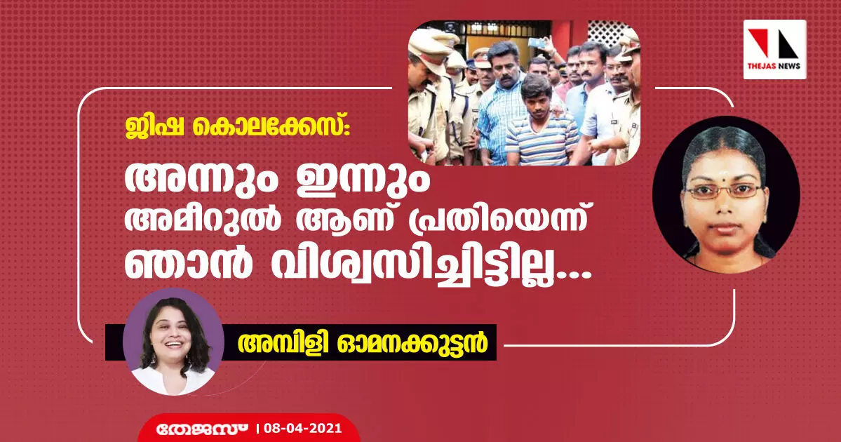 ജിഷ കൊലക്കേസ്: അന്നും ഇന്നും അമീറുല് ആണ് പ്രതിയെന്ന് ഞാന് വിശ്വസിച്ചിട്ടില്ല...: അമ്പിളി ഓമനക്കുട്ടന്