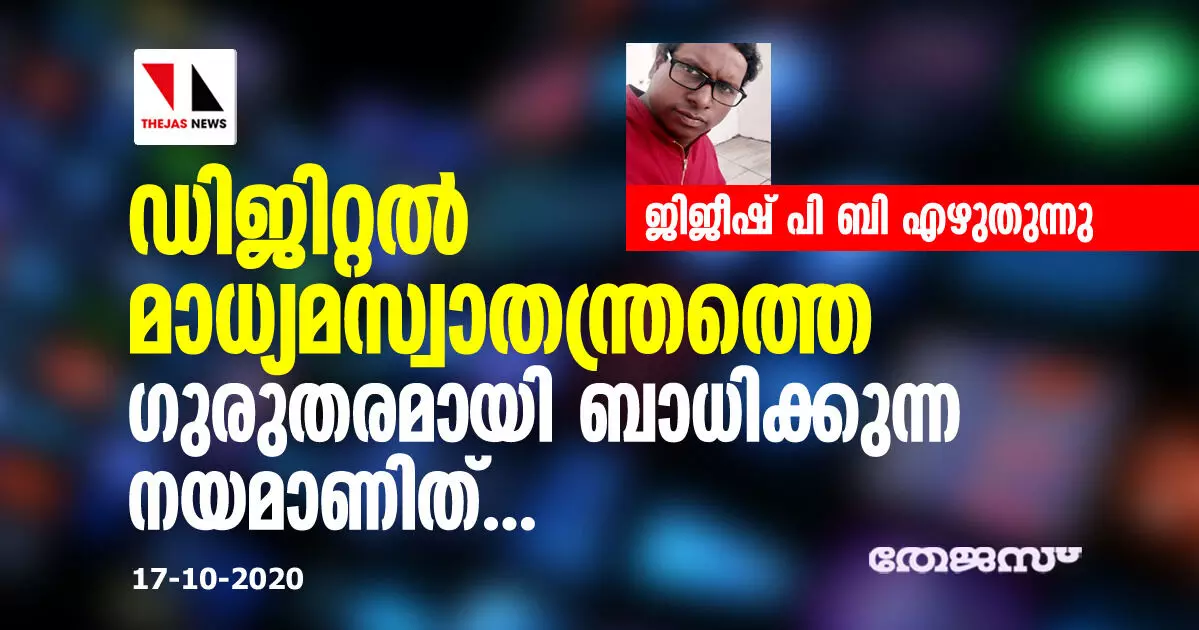 ഡിജിറ്റല് മാധ്യമസ്വാതന്ത്രത്തെ ഗുരുതരമായി ബാധിക്കുന്ന നയമാണിത്...; ജിജീഷ് പി ബി എഴുതുന്നു
