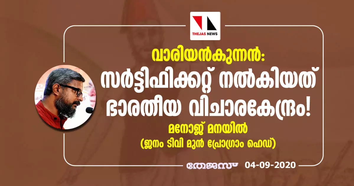 Variankunnan: Certificate issued by Bharathiya Vichara Kendra!; Former Janam TV programme head Manoj Manayil writes