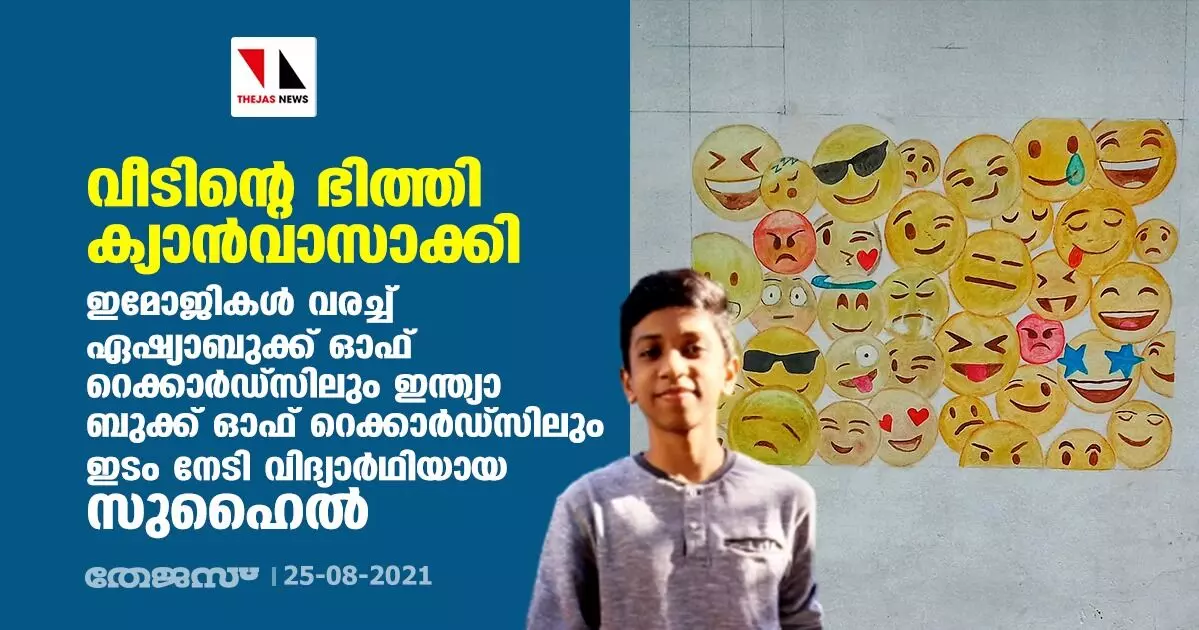 വീടിന്റെ ഭിത്തി ക്യാന്വാസാക്കി ; ഇമോജികള് വരച്ച് ഏഷ്യാബുക്ക് ഓഫ് റെക്കാര്ഡ്സിലും ഇന്ത്യാ ബുക്ക് ഓഫ് റെക്കാര്ഡ്സിലും ഇടം നേടി വിദ്യാര്ഥിയായ സുഹൈല്