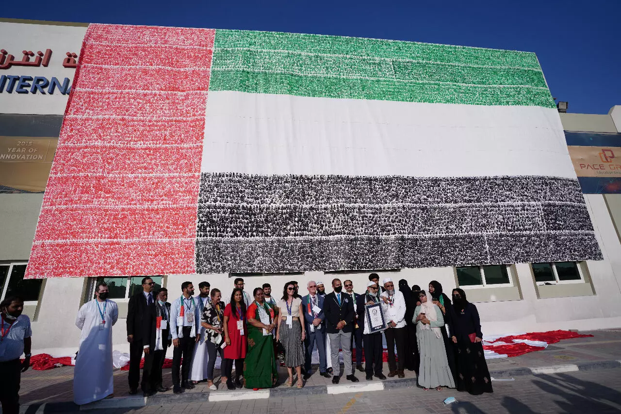 യുഎഇയുടെ 50 മത് ദേശീയ ദിനത്തോടനുബന്ധിച്ച് 64 രാഷ്ട്രങ്ങളില് നിന്നുള്ള 16367 പേര് കൈമുദ്ര പതിച്ച് 9 മീറ്റര് വീതിയും 18 മീറ്റര് നീളവുമുള്ള ചതുര്വര്ണ യു.എ. ഇ പതാക നിര്മ്മിച്ച്് പെയ്സ് എജ്യൂക്കേഷന് ഗ്രൂപ്പ് പുതിയ ഗിന്നസ് റെക്കോര്ഡ് കരസ്ഥമാക്കി. യു എ ഇയിലെ മലയാളികളുടെ ഉടമസ്ഥതയിലുള്ള വിദ്യാഭ്യാസ സംരംഭകരായ പെയ്സ് എജുക്കേഷന് ഗ്രൂപ്പാണ് വീണ്ടുമൊരു ഗിന്നസ് റെക്കോഡ് കൂടി കരസ്ഥമാക്കിയത്