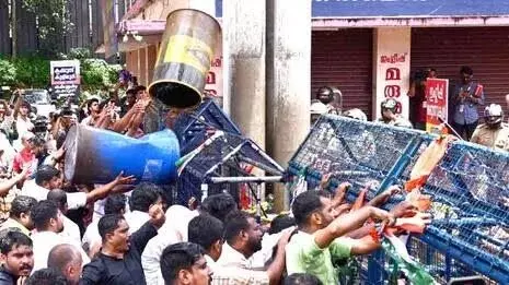 തിരുവനന്തപുരം : കോട്ടയം മെഡിക്കൽ കോളേജ് ആശുപത്രി കെട്ടിടം തകർന്ന് സ്ത്രീ മരിച്ച സംഭവത്തിൽ ആരോഗ്യമന്ത്രി വീണ ജോർജ് രാജിവെക്കണമെന്ന് ആവശ്യപ്പെട്ടുകൊണ്ട് സംസ്ഥാന വ്യാപകമായി സെക്രട്ടറിയേറ്റിലും,ജില്ലാ മെഡിക്കൽ ഓഫീസുകളിലേക്കും , കലക്ടറേറ്റുകളിലേക്കും പ്രതിപക്ഷ പാർട്ടികൾ മാർച്ച് നടത്തിക്കൊണ്ടിരിക്കുകയാണ്.'അപകടത്തിന്റെ ധാർമിക ഉത്തരവാദിത്വം ഏറ്റെടുത്ത് മന്ത്രി രാജിവെക്കണമെന്നും, അവർക്കെതിരെ കൊലക്കുറ്റം ചുമത്തി കേസെടുക്കണമെന്നുമാണ് പ്രതിപക്ഷ സംഘടനകൾ ആവശ്യപ്പെടുന്നത് .മന്ത്രിയുടെ ഔദ്യോഗിക വസതിയിലേക്കും ,ഓഫീസിലേക്കും മാർച്ച് നടത്തുന്നതിനാൽ അവിടെ വൻ സുരക്ഷ പോലീസ് ഏർപ്പെടുത്തിയിരിക്കുകയാണ്.തിരുവനന്തപുരത്ത് യൂത്ത് കോൺഗ്രസ് മാർച്ചിനു നേരെ പോലീസ് ജലപീരങ്കി ഉപയോഗിച്ചു.