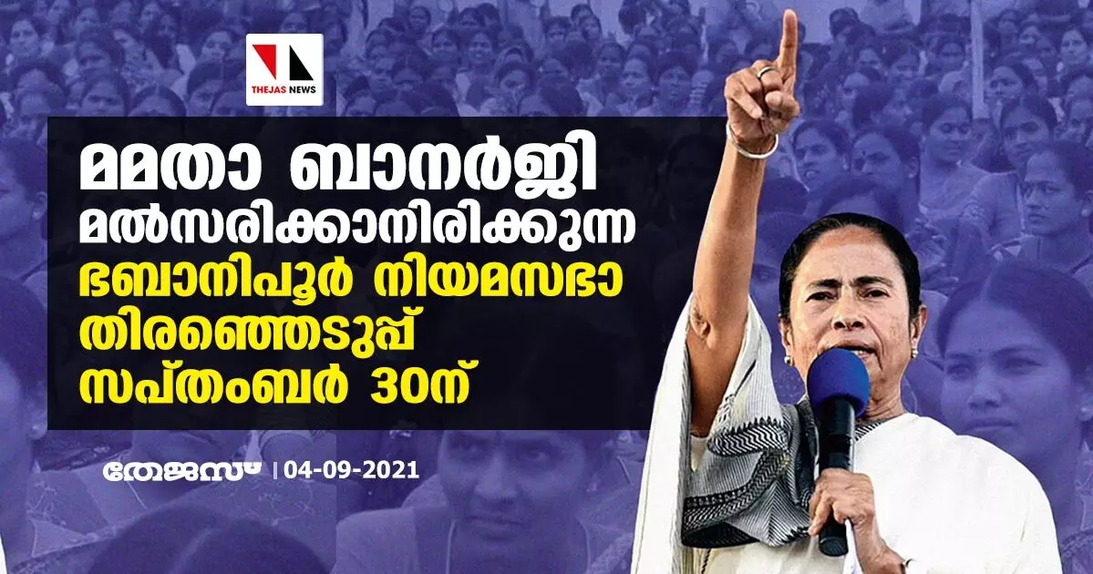 മമതാ ബാനര്ജി മല്സരിക്കാനിരിക്കുന്ന ഭബാനിപൂര് നിയമസഭാ തിരഞ്ഞെടുപ്പ് സപ്തംബര് 30ന്