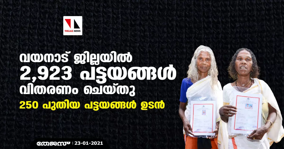 വയനാട് ജില്ലയില് 2,923 പട്ടയങ്ങള് വിതരണം ചെയ്തു; 250 പുതിയ പട്ടയങ്ങള് ഉടന്