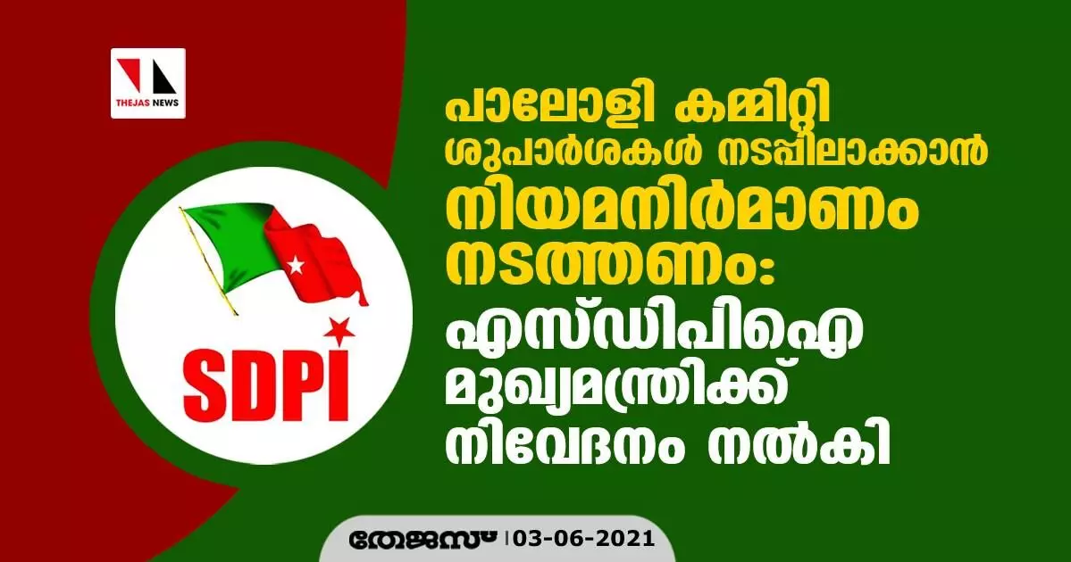 പാലോളി കമ്മിറ്റി ശുപാര്ശകള് നടപ്പിലാക്കാന് നിയമനിര്മാണം നടത്തണം; എസ്ഡിപിഐ മുഖ്യമന്ത്രിക്ക് നിവേദനം നല്കി