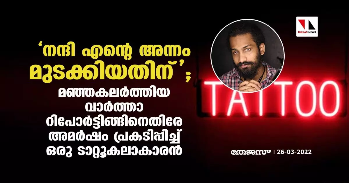 'നന്ദി എന്റെ അന്നം മുടക്കിയതിന്'; മഞ്ഞകലര്ത്തിയ വാര്ത്താ റിപോര്ട്ടിങ്ങിനെതിരേ അമര്ഷം പ്രകടിപ്പിച്ച് ഒരു ടാറ്റൂകലാകാരന്