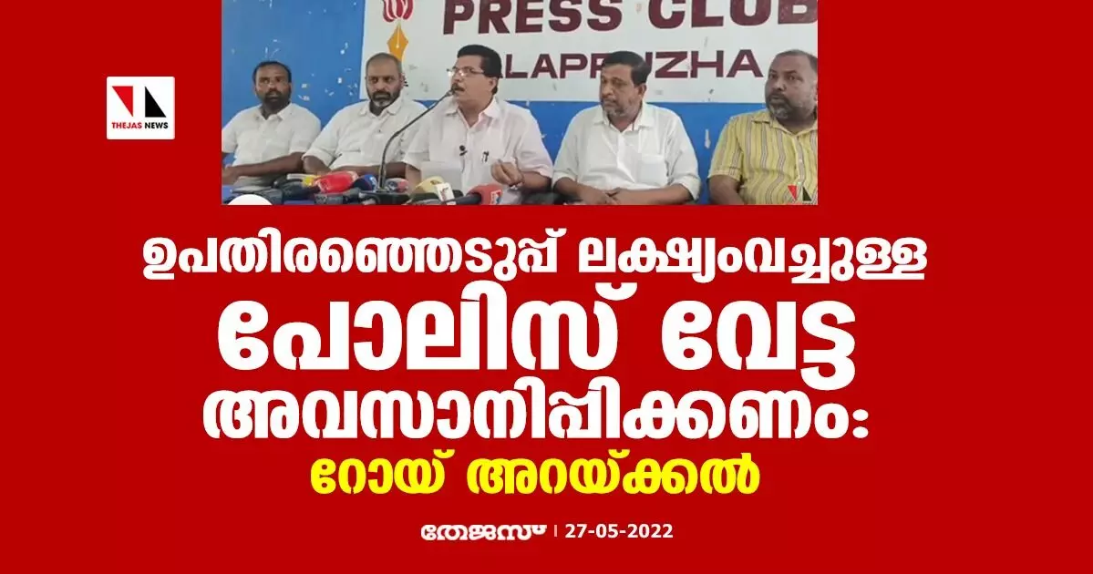 ഉപതിരഞ്ഞെടുപ്പ് ലക്ഷ്യം വെച്ചുള്ള പോലിസ് വേട്ട അവസാനിപ്പിക്കണം: റോയ് അറയ്ക്കല്