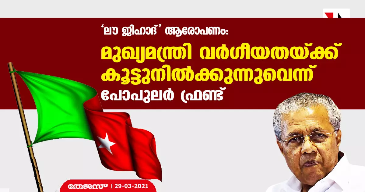 'ലൗ ജിഹാദ്' ആരോപണം: മുഖ്യമന്ത്രി വര്ഗീയതയ്ക്ക് കൂട്ടുനില്ക്കുന്നുവെന്ന് പോപുലര് ഫ്രണ്ട്