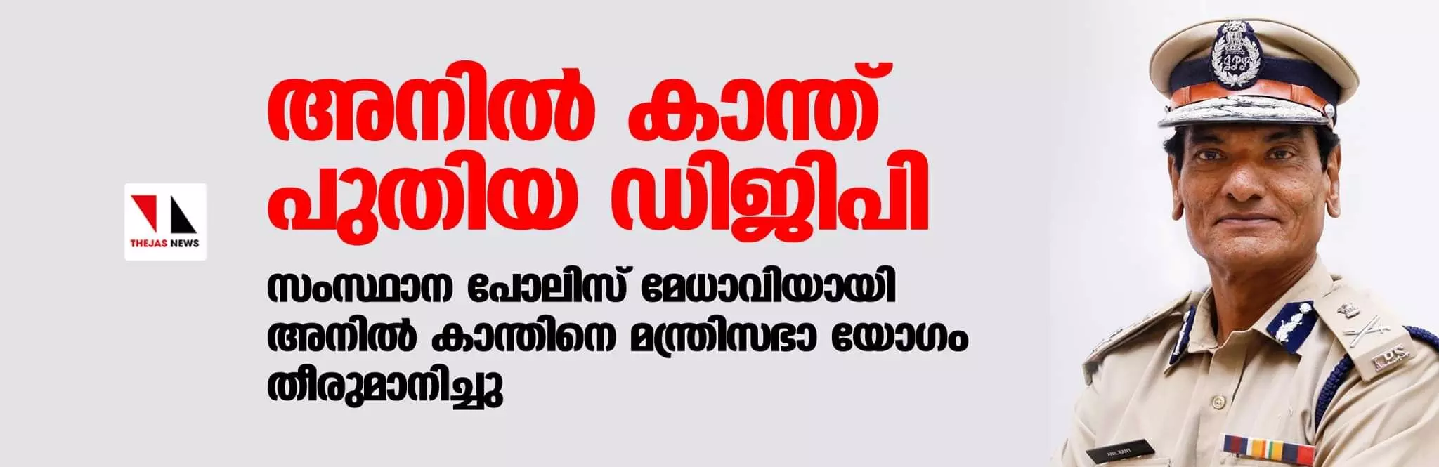 ഡിജിപിയായി അനില് കാന്ത്; സംസ്ഥാന പോലിസ് മേധാവിയായി അനില് കാന്തിനെ മന്ത്രിസഭാ യോഗം തീരുമാനിച്ചു