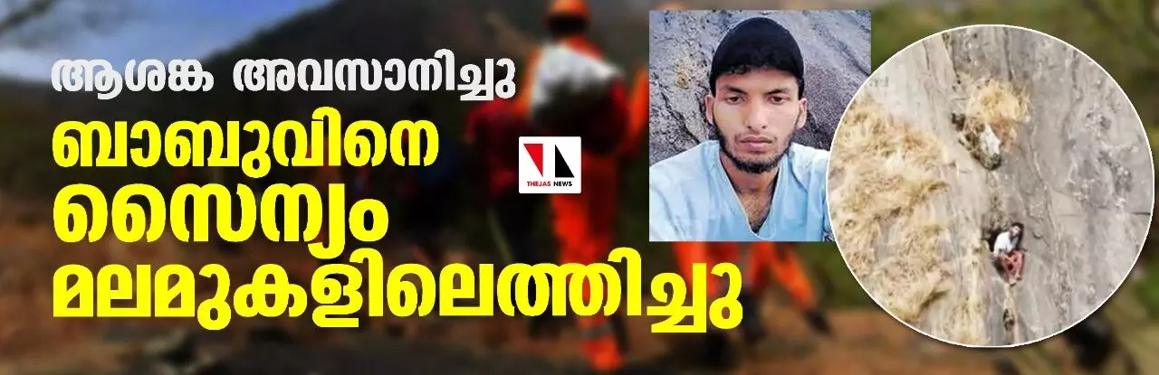 മലയിടുക്കിലെത്തിയ സൈനികര് സുരക്ഷാ ബെല്റ്റും ഹെല്മെറ്റും ധരിപ്പിച്ച് ബാബുവിനെ മുകളിലേക്ക് കയറ്റുകയായിരുന്നു.