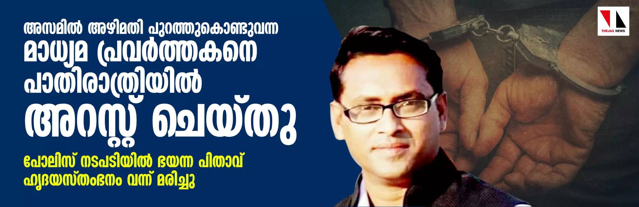 അസമില് അഴിമതി പുറത്തുകൊണ്ടുവന്ന മാധ്യമ പ്രവര്ത്തകനെ പാതിരാത്രിയില് അറസ്റ്റ് ചെയ്തു; പോലിസ് നടപടിയില് ഭയന്ന പിതാവ് ഹൃദയസ്തംഭനം വന്ന് മരിച്ചു