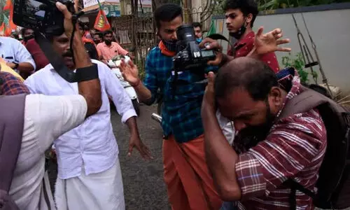 കോഴിക്കോട്: കക്കോടിയില് കേന്ദ്ര മന്ത്രി സ്മൃതി ഇറാനിയുടെ റോഡ് ഷോയുടെ ഫോട്ടോ എടുക്കാനെത്തിയ ജന്മഭൂമി ഫോട്ടോഗ്രാഫര് എം ആര് ദിനേശ് കുമാറിന് നേരെ നടന്ന ആക്രമണത്തില് കേരള പത്രപ്രവര്ത്തക യൂണിയന് കോഴിക്കോട് ജില്ലാ കമ്മിറ്റി പ്രതിഷേധിച്ചു.