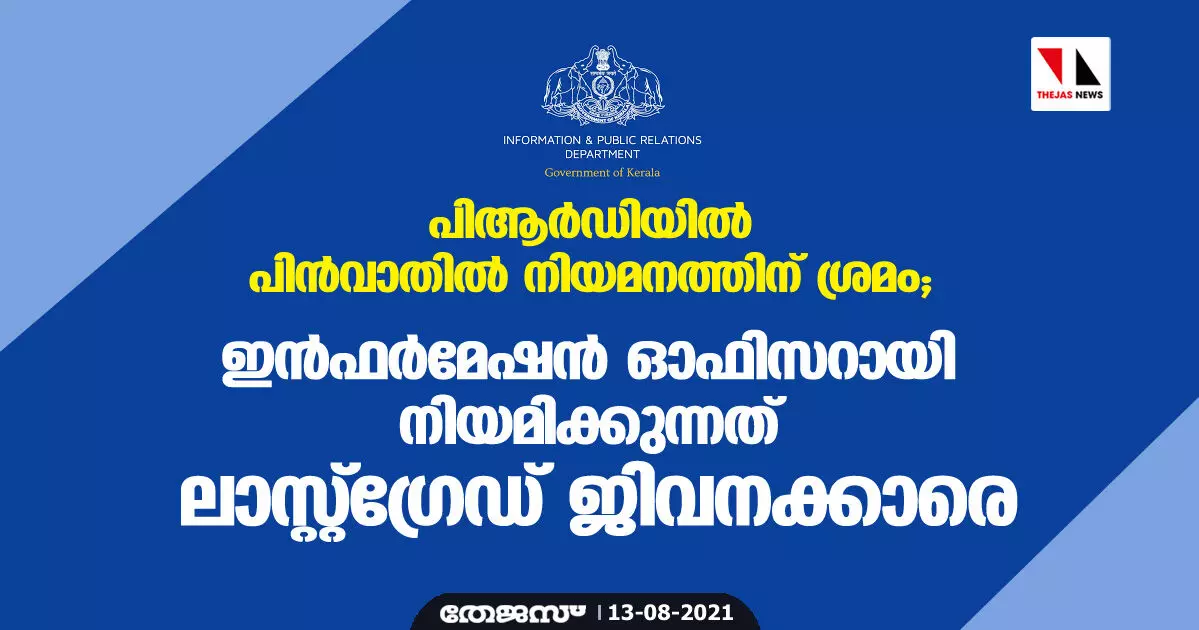 പിആര്ഡിയില് പിന്വാതില് നിയമനത്തിന് ശ്രമം; ഇന്ഫര്മേഷന് ഓഫിസറായി നിയമിക്കുന്നത് ലാസ്റ്റ്ഗ്രേഡ് ജിവനക്കാരെ