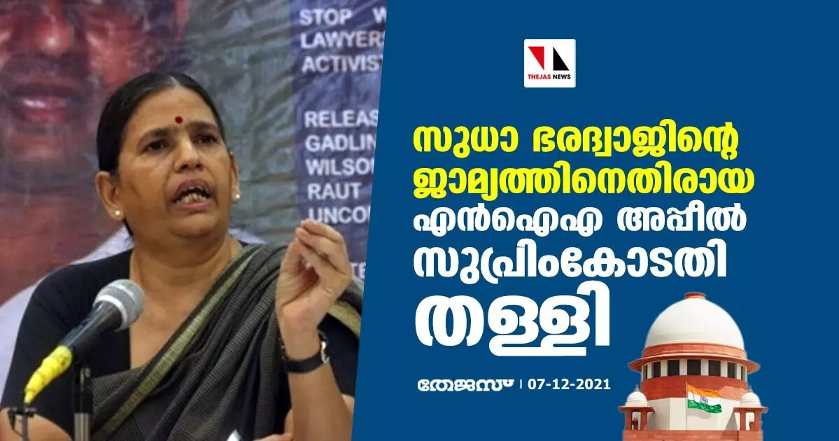 ഭീമാ കൊറേഗാവ് കേസ്: സുധാ ഭരദ്വാജിന്റെ ജാമ്യത്തിനെതിരായ എന്ഐഎ അപ്പീല് സുപ്രിംകോടതി തള്ളി