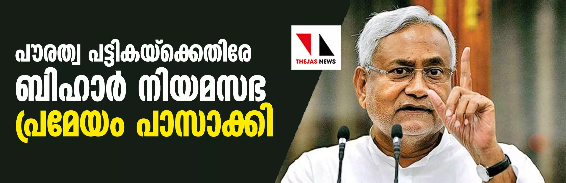 പൗരത്വ പട്ടികക്കെതിരേ ബിഹാര് നിയമസഭ പ്രമേയം പാസാക്കി