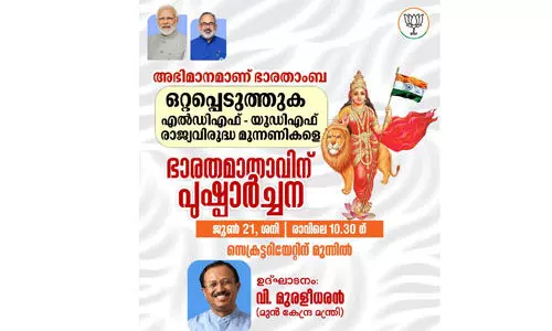 തിരുവനന്തപുരം: ആര്എസ്എസിന്റെ കൊടിയും 'അഖണ്ഡഭാരതവും' ഒഴിവാക്കിയ 'ഭാരതാംബ'യുടെ ചിത്രവുമായി ബിജെപി. രാജ്ഭവനെയും ഔദ്യോഗികപരിപാടികളെയും സംഘവല്ക്കരിക്കാനുള്ള ഗവര്ണറുടെ നീക്കത്തിനെതിരെ സര്ക്കാരും മന്ത്രിമാരും നിലപാട് സ്വീകരിച്ചതിനെ തുടര്ന്ന് നടത്തുന്ന പ്രതിഷേധത്തിലാണ് ആര്എസ്എസ് കൊടിയില്ലാത്ത 'ഭാരതാംബയെ' ബിജെപി ഒളിച്ചു കടത്തിയത്. ഭാരതമാതാവിനോടും ഭരണഘടനാ സംവിധാനങ്ങളോടുമുള്ള സര്ക്കാരിന്റെ അവഹേളനത്തില് പ്രതിഷേധിച്ച് ഭാരതമാതാവിന് ഇന്ന് പുഷ്പാര്ച്ചന നടത്തുമെന്ന് ബിജെപി പ്രഖ്യാപിച്ചു. രാവിലെ 10.30 ന് സെക്രട്ടറിയേറ്റിന് മുന്നിലാണ് പ്രതിഷേധം.