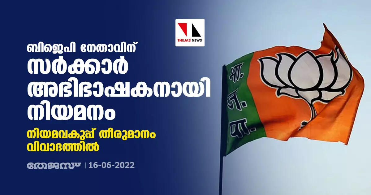 ബിജെപി നേതാവിന് സര്ക്കാര് അഭിഭാഷകനായി നിയമനം; നിയമവകുപ്പ് തീരുമാനം വിവാദത്തില്
