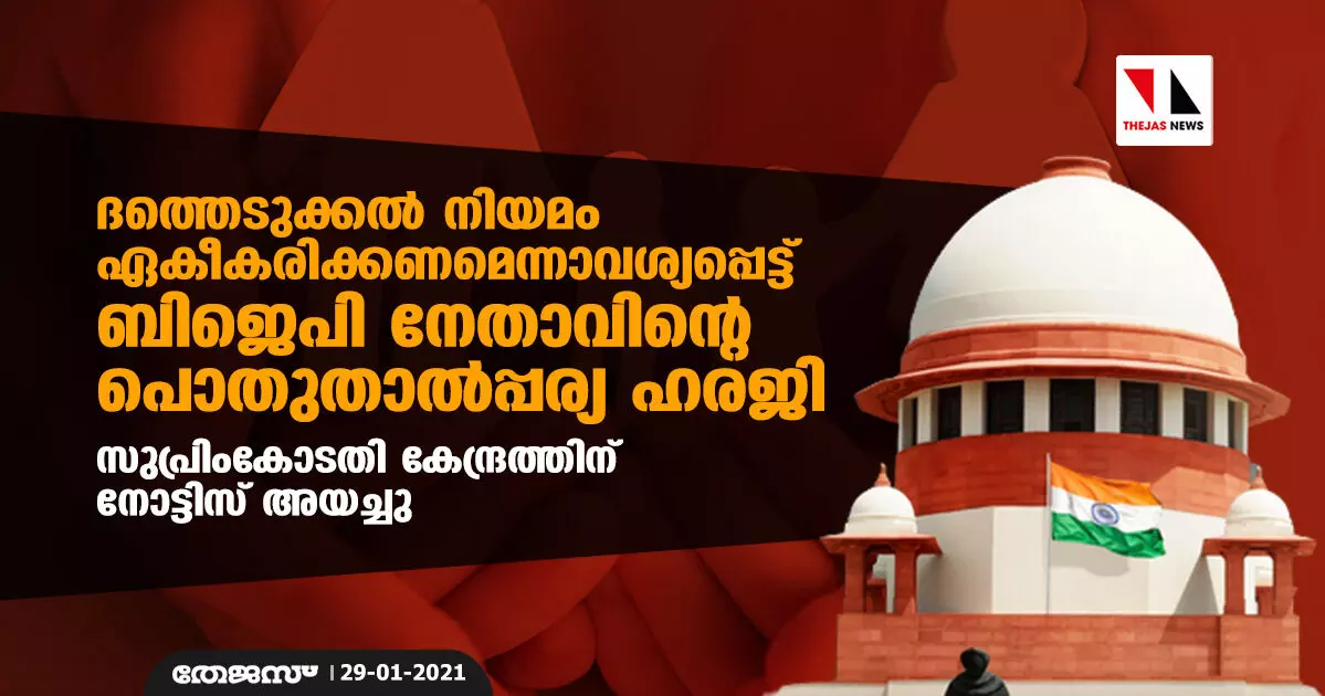 ദത്തെടുക്കല് നിയമം ഏകീകരിക്കണമെന്നാവശ്യപ്പെട്ട് ബിജെപി നേതാവിന്റെ പൊതുതാല്പ്പര്യ ഹരജി: സുപ്രിംകോടതി കേന്ദ്രത്തിന് നോട്ടിസ് അയച്ചു