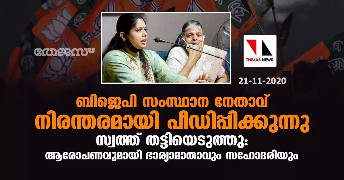 ബിജെപി സംസ്ഥാന നേതാവ് നിരന്തരമായി പീഡിപ്പിക്കുന്നു; സ്വത്ത് തട്ടിയെടുത്തു: ആരോപണവുമായി ഭാര്യാമാതാവും സഹോദരിയും