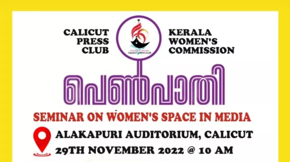 കോഴിക്കോട്: സംസ്ഥാന വനിതാ കമ്മീഷനും കാലിക്കറ്റ് പ്രസ് ക്ലബ്ബും ചേർന്ന് സംഘടിപ്പിക്കുന്ന 'പെൺപാതി' സെമിനാർ 29 ന് കോഴിക്കോട് അളകാപുരി ഓഡിറ്റോറിയത്തിൽ നടക്കും. 'മാധ്യമമേഖലയിലെ പെൺകരുത്തും പിൻവിളികളും' എന്ന വിഷയത്തിലാണ് സെമിനാർ.