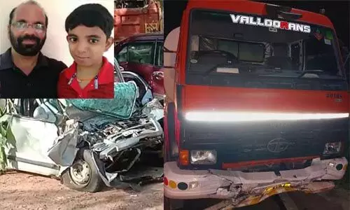 കാര് ടാങ്കര് ലോറിയില് ഇടിച്ച് അച്ഛനും മകനും മരിച്ചു; ആത്മഹത്യയെന്ന സൂചന നല്കി ഫേസ്ബുക്ക് പോസ്റ്റ്