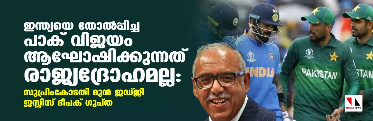 ഇന്ത്യയെ തോല്പ്പിച്ച പാക് വിജയം ആഘോഷിക്കുന്നത് രാജ്യദ്രോഹമല്ല: സുപ്രിംകോടതി മുന് ജഡ്ജി ജസ്റ്റിസ് ദീപക് ഗുപ്ത
