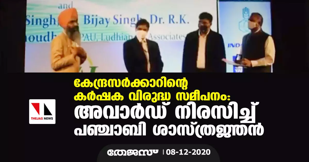 കേന്ദ്രസര്ക്കാറിന്റെ കര്ഷക വിരുദ്ധ സമീപനം: അവാര്ഡ് നിരസിച്ച് പഞ്ചാബി ശാസ്ത്രജ്ഞന്