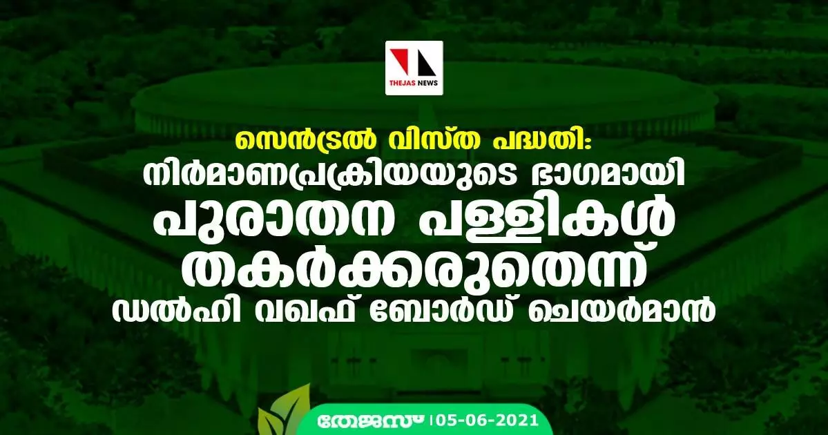 സെൻട്രൽ വിസ്ത പദ്ധതി: നിർമാണപ്രക്രിയയുടെ ഭാഗമായി പുരാതന പള്ളികൾ തകർക്കരുതെന്ന് ഡൽഹി വഖഫ് ബോർഡ് ചെയർമാൻ
