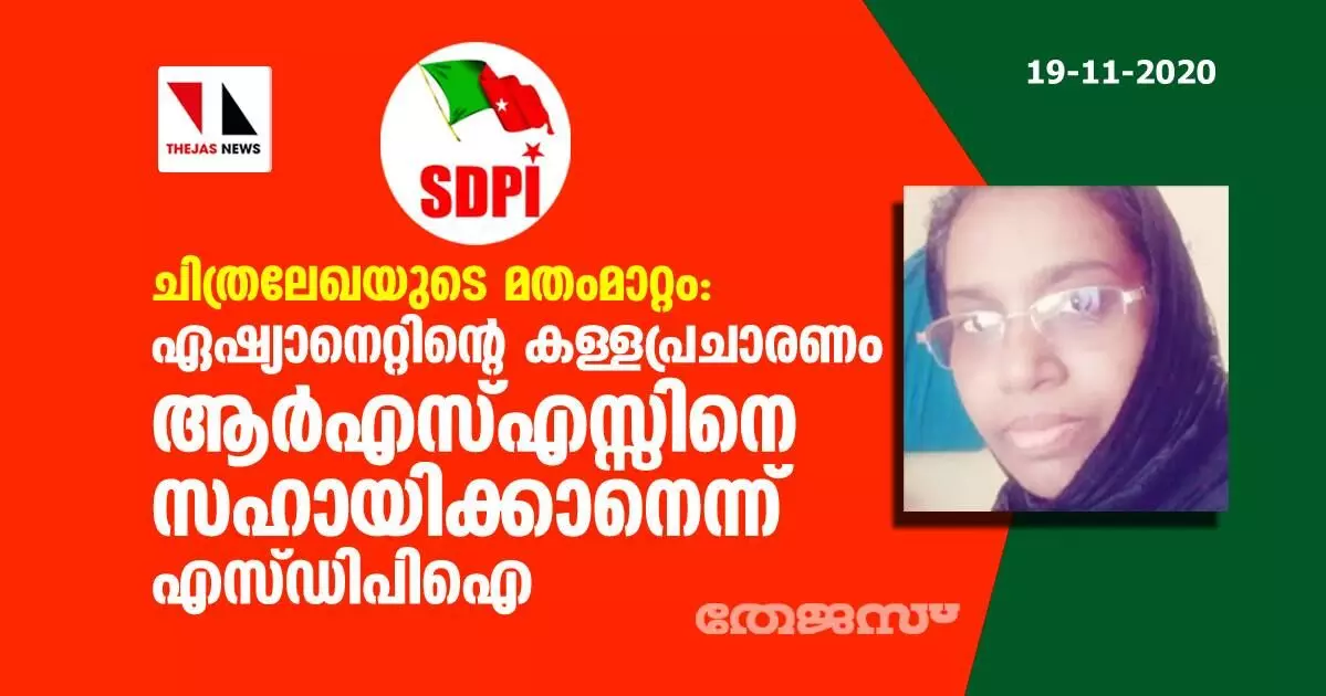 ചിത്രലേഖയുടെ മതംമാറ്റം: ഏഷ്യാനെറ്റിന്റെ കള്ളപ്രചാരണം ആര്എസ്എസ്സിനെ സഹായിക്കാനെന്ന് എസ്ഡിപിഐ