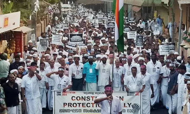 തച്ചനാട്ടുകര: ദേശീയ പൗരത്വ ഭേദഗതി നിയമത്തിനെതിരേ തച്ചനാട്ടുകര പഞ്ചായത്ത് ഭരണഘടനാ സംരക്ഷണ സമിതി നടത്തിയ ഭരണഘടനാ സംരക്ഷണ റാലി താക്കീതായി. പഞ്ചായത്തിന്റെ ചരിത്രത്തില് ഇന്നുവരെ കാണാത്ത ജനപങ്കാളിത്തമാണ് റാലിയില് അണിനിരന്നത്. വൈകീട്ട് നാലു മണിയാവുമ്പോഴേക്കും റാലിയാരംഭിക്കുന്ന ചെത്തല്ലൂരില് റാലിയില് അണി ചേരാനായി ആയിരങ്ങള് ഒത്തുകൂടിയിരുന്നു. അസര് നമസ്കാരാനന്തരം 4.30നു ആരംഭിച്ച റാലി ആറരയോടെ കരിങ്കല്ലത്താണിയിലെത്തി. വിവിധ മതവിശ്വാസികളും രാഷ്ട്രീയ പാര്ട്ടി പ്രവര്ത്തകരും കുട്ടികളും വൃദ്ധരും തൊഴിലാളികളും സാംസ്കാരിക പ്രവര്ത്തകരും വ്യാപാരികളും റാലിയില് അണിനിരന്നു. സ്വാതന്ത്ര്യ സമര സ്മരണകളുറങ്ങുന്ന തച്ചനാട്ടുകരയുടെ മണ്ണില് ഒരിക്കല് കൂടി പൂര്വപിതാക്കളുടെ പാവനസ്മരണകള് പുതുതലമുറ ഓര്ത്തെടുത്തു. ജീവന് നല്കിയും തുല്യതയില്ലാത്ത ത്യാഗം സഹിച്ചും നേടിയെടുത്ത സ്വാതന്ത്ര്യം ഇല്ലാതാക്കാന് ആരുശ്രമിച്ചാലും അനുവദിക്കില്ലെന്ന് പ്രകടനക്കാര് വിളിച്ചുപറഞ്ഞു.