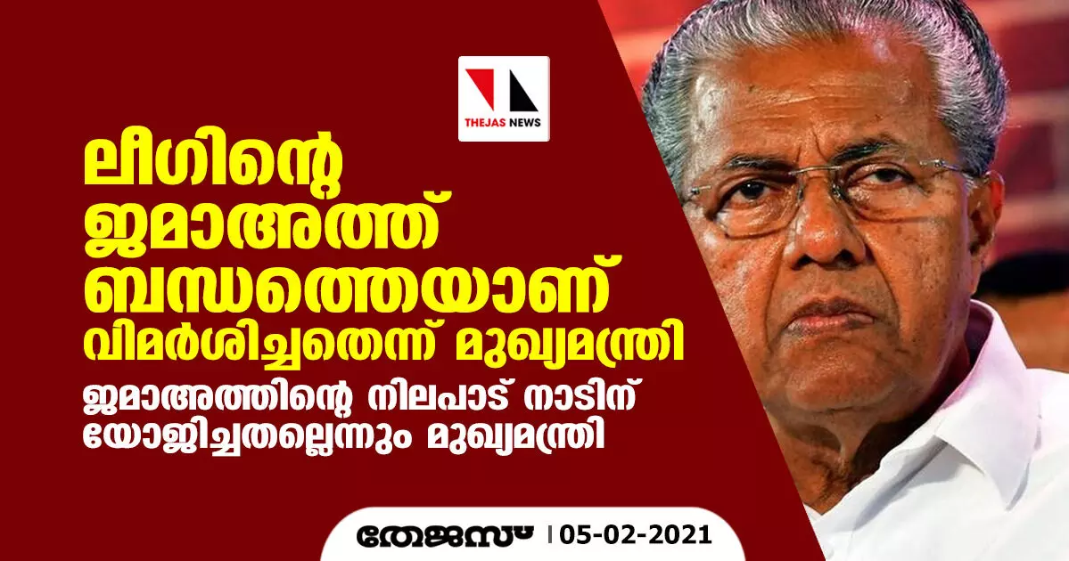 ലീഗിന്റെ ജമാഅത്ത് ബന്ധത്തെയാണ് വിമര്ശിച്ചതെന്ന് മുഖ്യമന്ത്രി