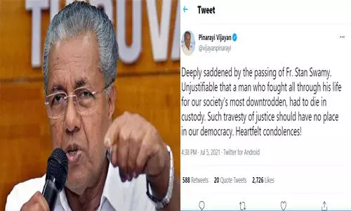 കസ്റ്റഡിയില് മരിക്കേണ്ടി വന്നത് നീതീകരിക്കാനാവില്ല; സ്റ്റാന് സ്വാമിയുടെ മരണത്തില് മുഖ്യമന്ത്രി
