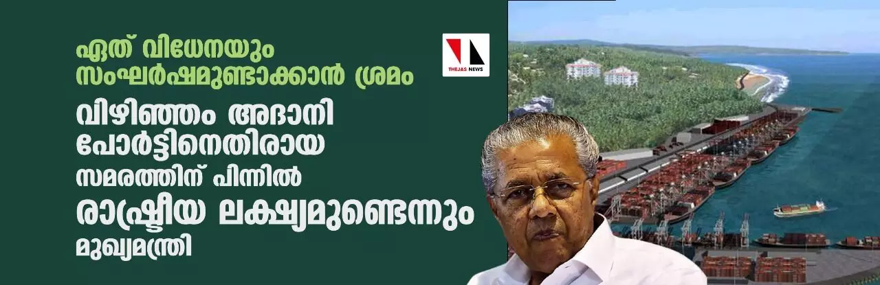 ഏത് വിധേനയും സംഘര്ഷമുണ്ടാക്കാന് ശ്രമം; അദാനി പോര്ട്ടിനെതിരായ സമരത്തിന് പിന്നില് രാഷ്ട്രീയ ലക്ഷ്യമുണ്ടെന്നും മുഖ്യമന്ത്രി