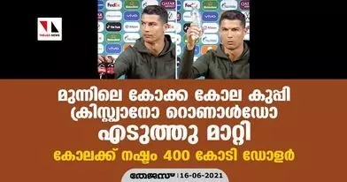 മുന്നിലെ കോക്ക കോല കുപ്പി ക്രിസ്റ്റ്യാനോ റൊണാള്ഡോ എടുത്തു മാറ്റി; കോലക്ക് നഷ്ടം 400 കോടി ഡോളര്
